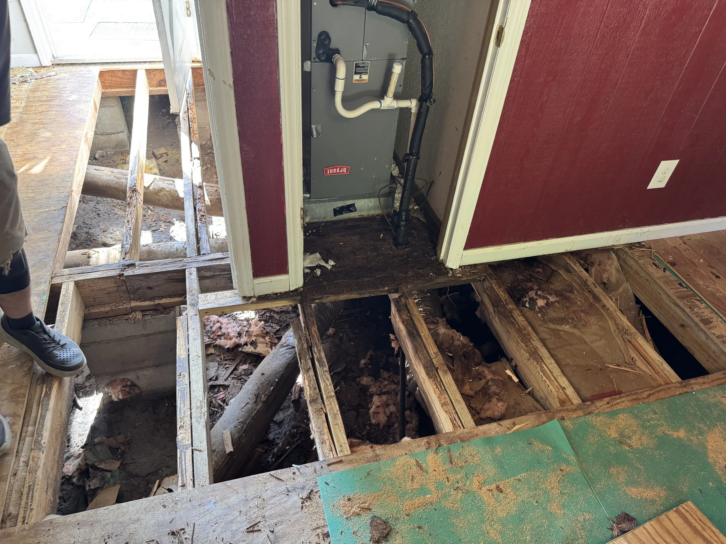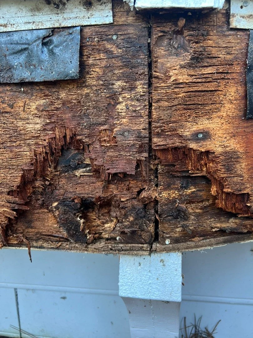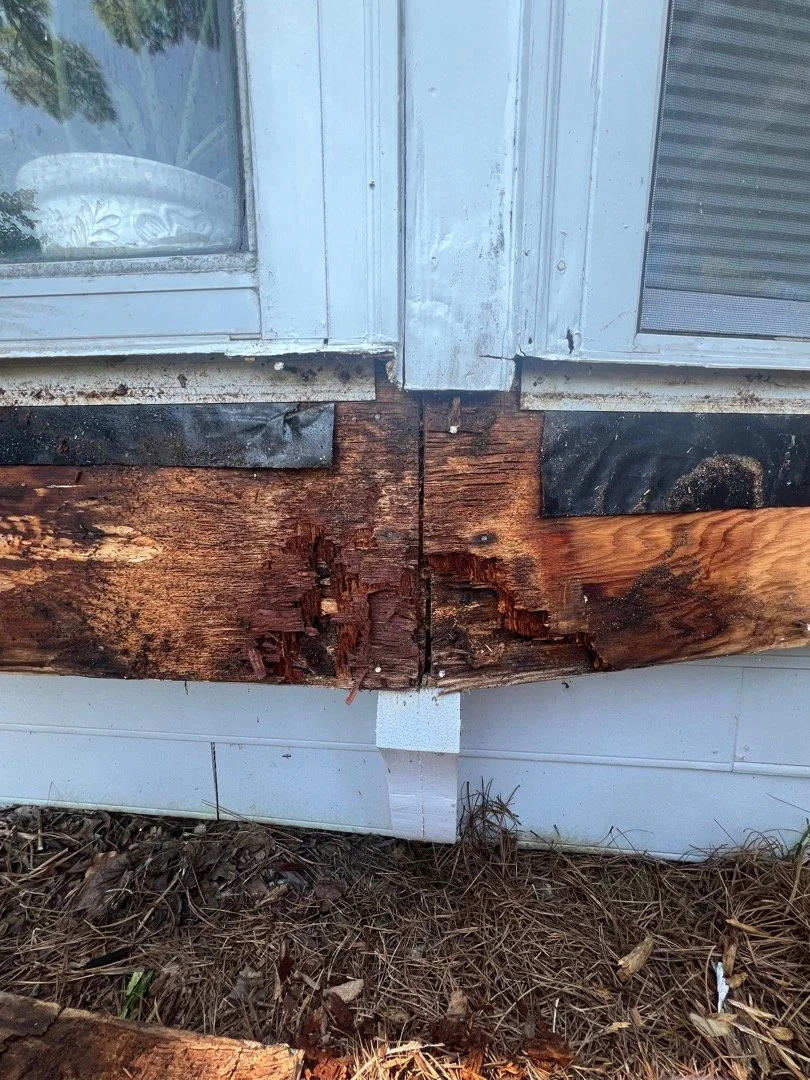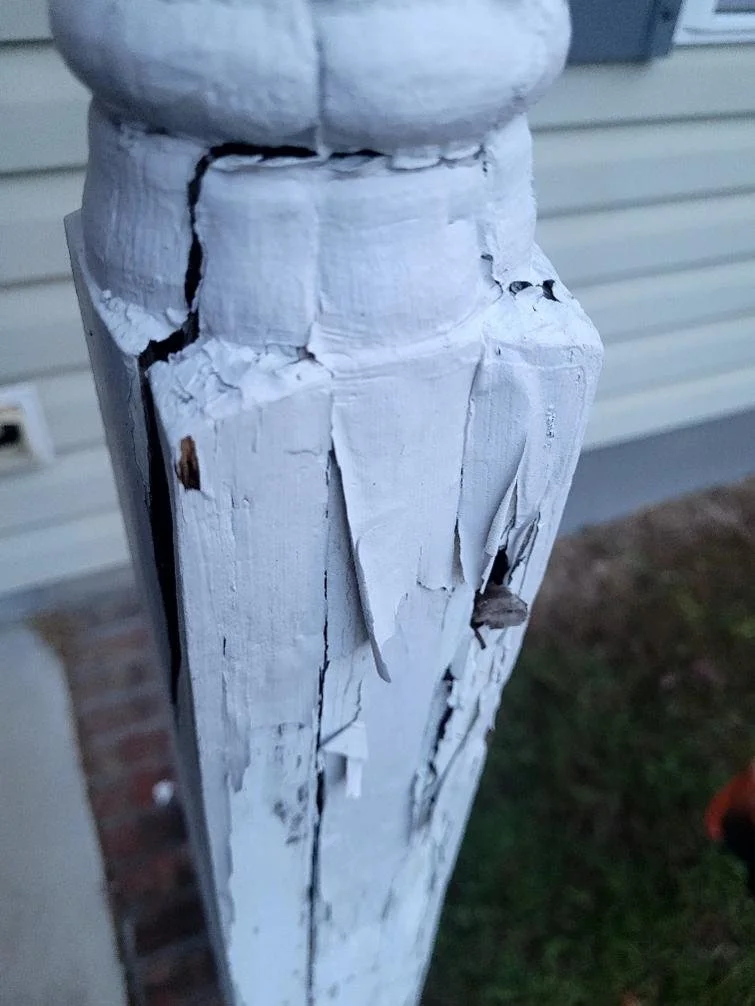 In North Carolina, we face everything from blazing 90-degree summers to flooding rains and freezing winters — all of which take a toll on wood. One of the most common problems we see is rot at the base of porch posts, trim, or framing where the wood meets concrete, door jambs, or brick molding.
